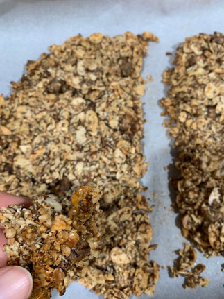 packed granola in half by sliding some of it over to allow air to get between it to crisp up and brown.